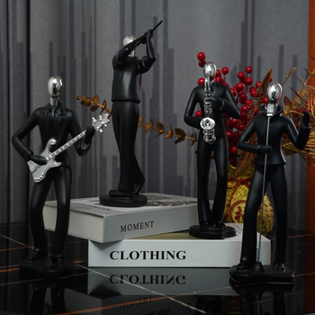 İskandinav basit stil siyah soyut reçine müzisyen heykeli Modern ev dekor oturma odası için şarap soğutucu yatak çalışma Set